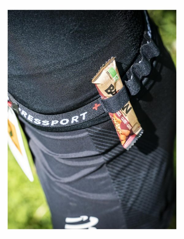 How many times have you pricked a finger or snagged a shirt trying to attach a race bib with safety pins? No more fumbling with freezing fingers thanks to the convenient bib number belt. Simply secure the race number with the toggles. Easily-adjustable, it sits snugly around your hips or waist for chafe-free racing. Four elastic gel holders on each side allow for fuss-free refueling on the run. Particularly useful in triathlon where bibs are worn on the back while cycling and on the front during the run, the belt can be quickly spun around to keep referees happy. Pro triathlon tip: leave your belt buckled and simply step into it and pull up, rather than fighting with annoying buckles in the heat of transition