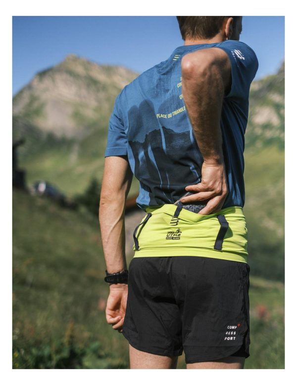 Attention, the backpack era may be over! Developed for and with our athletes, our Freebelt Pro trail running belt sparked a mini-revolution in the trail running world in spring 2018 and has since been seen at the forefront of ultras worldwide. A single, ultra-stretchy, and easy-to-access pocket can hold everything you need for up to 6 hours of self-sufficient running: Ergoflasks, nutrition, phone, baselayer, waterproof jacket, and more. Folded poles attach to the belt using two silicone loops. Additional attachments carry your race bib. The ergonomic design combined with the extra-elastic material adapts to all body shapes: the belt sits comfortably around the hips and does not move, regardless of its contents. If you’re aiming for longer distances, the Freebelt Pro can be paired with the Ultrun S Pack for greater volume and optimal weight distribution—no more bulky backpacks! The sleek black design is as effective as it is stylish. Height: 16cm.”