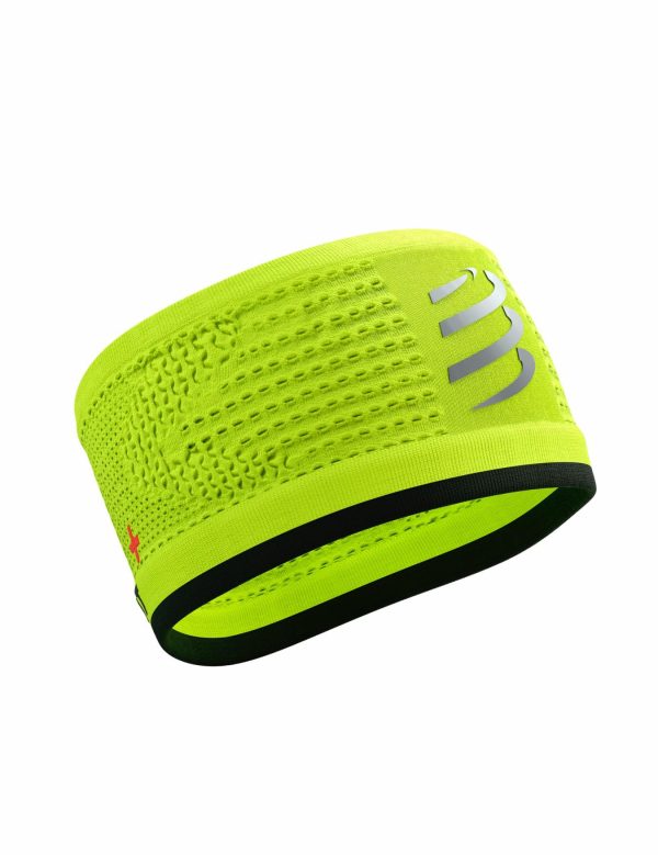 The ultimate in high-performance headwear, our classic Headband On/Off is designed to keep you cool when it’s hot and warm when it’s not. And with safety a growing question today, this Flash edition offers a brand new, high-visibility colour scheme to help you stay visible in traffic, through the forest and in low-light conditions. The fluoro yellow fabric is completed by a full-height, reflective racing logo on the front and stylish black binding around the base. Made from stretchy, seamless microfiber, this sports headband is designed for ultra-effective thermoregulation and comfort during training and racing. The Compressport On/Off technology offers 360° ventilation for speedy sweat-wicking: the headband dries up to 7 times faster than regular models to ensure you don’t overheat or catch a chill. The soft fibres fit over your head and ears with no uncomfortable pressure points, keeping eyes and forehead free of sweat and unruly hair. Exceptionally ergonomic, the Flash multisport hairband stays securely in place no matter how intense the effort. Whether it’s warm or cold, light or dark, this high-visibility headband will help keep you clear-headed and safe in all situations. Product height: 7.5 cm