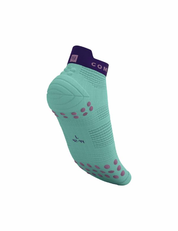Tried and tested over hundreds of kilometres by our team, the 4th generation of our Pro Racing Socks Run Low are bringing revolutionized aeration and blister-protection to your warm weather runs. The technical weave is lightweight and ventilated, quickly wicking away moisture so your feet remain cool and dry. A redesigned, wider toe box offers a more ergonomic fit and improved proprioception, allowing the toes to grip intuitively on landing for a natural, fluid stride. The light knit around the heel, identical to the PRS High version, offers targeted support when you pick up the pace, while terry cloth padding on the big toe saves you from blackened nails on longer runs. The medium arch support boosts micro circulation and prevents the fabric from twisting and folding to keep painful blisters and irritation at bay. Our brand new Flat.Dots technology joins special 3D.dots around the Achilles tendon for added padding and protection as your feet beat the tarmac. Underfoot, a pattern of 3D.Dots (75%) and Flat.Dots (25%) cushions impact and offers added ventilation, grip in the shoe as well as gentle stimulation to boost venous return and delay fatigue. The anatomic fit and technologies are specifically targeted at the rigours of road running, while the low cut ensures overheating is never a worry. An ergonomic tab at the rear adds a touch of comfort and style and, should you ever forget you`re heading out for a run, the discipline is discreetly embroidered on the inside. The classic design is a nod to our performance DNA, so that all you have left to do is aim for your next PB.