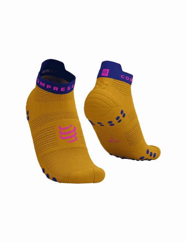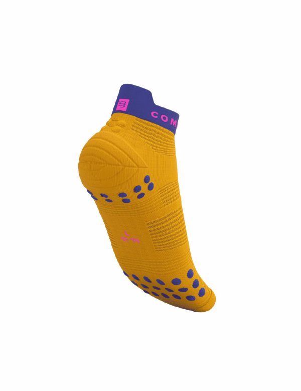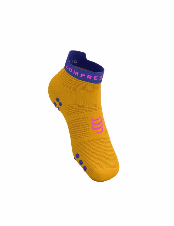 Tried and tested over hundreds of kilometres by our team, the 4th generation of our Pro Racing Socks Run Low are bringing revolutionized aeration and blister-protection to your warm weather runs. The technical weave is lightweight and ventilated, quickly wicking away moisture so your feet remain cool and dry. A redesigned, wider toe box offers a more ergonomic fit and improved proprioception, allowing the toes to grip intuitively on landing for a natural, fluid stride. The light knit around the heel, identical to the PRS High version, offers targeted support when you pick up the pace, while terry cloth padding on the big toe saves you from blackened nails on longer runs. The medium arch support boosts micro circulation and prevents the fabric from twisting and folding to keep painful blisters and irritation at bay. Our brand new Flat.Dots technology joins special 3D.dots around the Achilles tendon for added padding and protection as your feet beat the tarmac. Underfoot, a pattern of 3D.Dots (75%) and Flat.Dots (25%) cushions impact and offers added ventilation, grip in the shoe as well as gentle stimulation to boost venous return and delay fatigue. The anatomic fit and technologies are specifically targeted at the rigours of road running, while the low cut ensures overheating is never a worry. An ergonomic tab at the rear adds a touch of comfort and style and, should you ever forget you`re heading out for a run, the discipline is discreetly embroidered on the inside. The classic design is a nod to our performance DNA, so that all you have left to do is aim for your next PB.