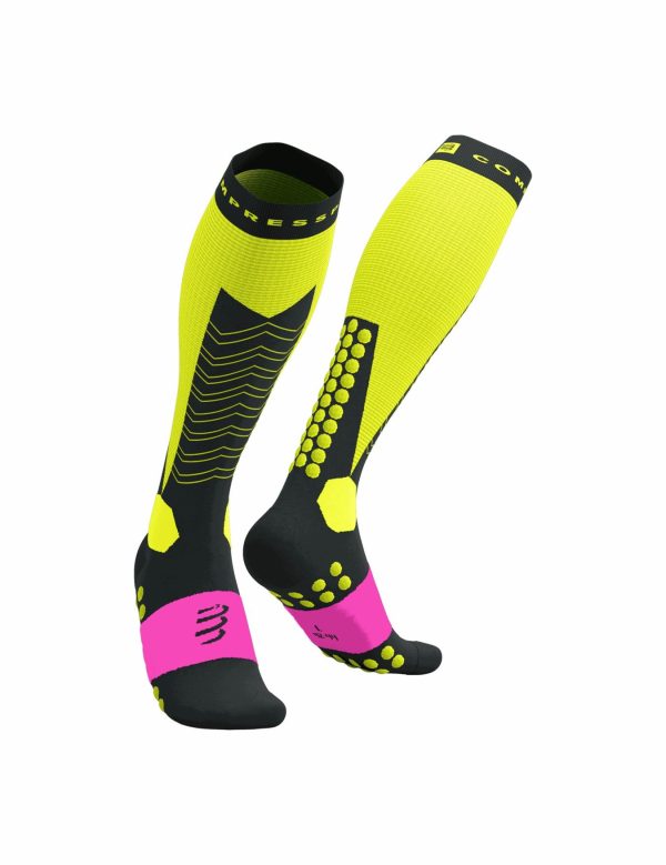 Skimo: where lightness, speed and performance are all synonymous. Developed with high-level competition in mind, the Skimo Racing Full Sock are made from fine, featherweight fibres for enhanced performance in the toughest conditions. As technical as the shoes you are wearing, these racing socks bring you multigradual compression from the foot up for optimal muscle support, increased blood flow and improved muscle oxygenation. Muscle vibration is greatly reduced, limiting damage and delaying the onset of fatigue during effort. Your legs stay fresh and light to give you the best possible shot at beating your best. The polyamide fabric is designed for optimal thermoregulation, with a ventilation shaft at the back to quickly wick away sweat and moisture and ensure your feet stay warm during less active phases such as descents. A studied zig-zag weave on the shin and terry-loop patches over the malleolus bones protect from the pressure of the boot. Underfoot, 3D.Dot technology helps with airflow to evacuate sweat while providing extra grip and feel at high intensity efforts. An integrated arch support with pump up technology activates venous return and prevents the fabric from twisting, increasing grip and keeping blisters at bay. Last but not least, the ergonomic toe box is only lightly reinforced, bringing targeted protection without adding excess weight. The socks can also be worn after training and racing to encourage toxin elimination and accelerate recovery. So, have you signed up for the Pierra Menta yet?