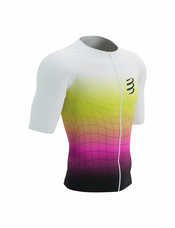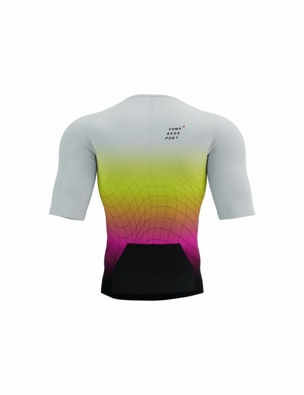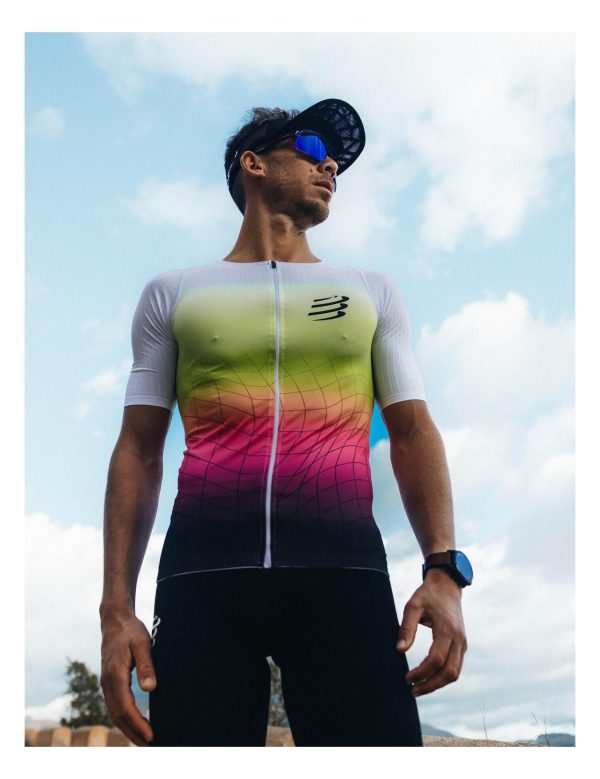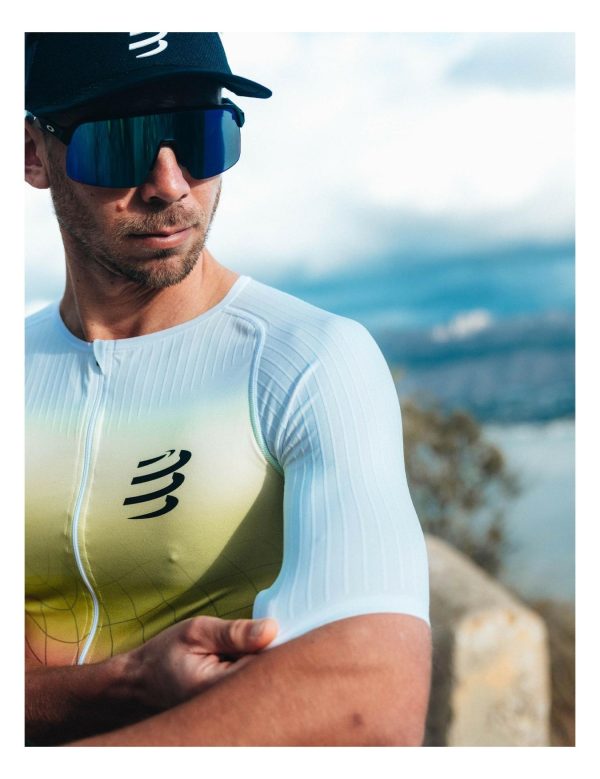 Did you know we have a Compressport research lab dedicated to pushing the boundaries of apparel performance? Constantly looking to answer the needs of athletes aiming for the very highest level, we took to the wind tunnel with professional triathlete Arnaud Guilloux to develop the all-new Tri Postural Aero SS Top. With a focus set squarely on aerodynamic efficiency, this new piece is made from fast-drying Lycra material and fits like a second skin so you don’t lose a second, from the start to the finish line. Borrowing technologies from our high performance Aero Socks, the fabric is textured to increase surface turbulation and reduce drag. Structured lines on the sleeves, upper chest and shoulders pair with targeted Aero.Dots to direct airflow and save precious watts on the bike course. Elite-level thermoregulation and heat protection keep you cool and fresh when the intensity builds, aided by ventilation bands down the back to quickly evacuate excess humidity when you come out of the swim. The tight, seamless sleeve design offers Optimal range of shoulder movement in all disciplines and is cut extra-long on the arm for improved aerodynamics, with a seamless hem that stays securely in place when you put the hammer down. And if the miles start to feel a little long, our signature Spin Control technology is woven into the fabric to helps keep shoulders straight and core engaged. The full-length, straight zip is self-locking for adaptable ventilation on the run. Two rear pockets hold all-important extra nutrition, with pro-approved side openings on either side for easy access. An inner pocket on the chest handily fits a gel for the run leg, keeping it out of the way of airflow on the bike but within quick reach when you need that final boost to reach the red carpet. Designed first and foremost for long-distance training and racing, this tri top can be combined with our Tri Under Control Short for ultimate versatility and comfort. A silicone band around the waist prevents the fabric from riding up and creating a gap between the top and shorts, whilst the dynamic design across the torso keeps you looking and feeling fresh when the sun beats down. When performance is a minimum, aero is key. Kona is calling.