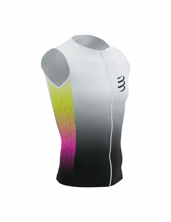 Designed to be one of the lightest triathlon tops out there, the brand-new Tri Postural Aero Tank Top is aiming for the highest level at the hottest swim-bike-run races. With a focus set squarely on aerodynamic efficiency, this innovative triathlon singlet is tried, tested and approved in the wind tunnel alongside our fastest pros. Made from fast-drying Lycra material, it fits like a second skin so you don’t lose a second from the start to the finish line. Inspired by the technologies used in our high-performance Aero Socks, the fabric on the upper torso is textured to increase surface turbulation and reduce drag. This comes in the form of structured lines and targeted Aero.Dots on the chest and back to direct airflow and save precious watts when you’re time trialling to a new PB. Elite-level thermoregulation and heat protection keep you cool and fresh when the intensity builds, aided by ventilation bands down the back to quickly evacuate excess humidity when you come out of the water. The sleeveless design offers Optimal range of shoulder movement, perfect for ultra-hot conditions or triathletes who simply don’t like the feel of fabric over their arms. The seams around the armpits sit flat and still to avoid any chafing or irritation, while our signature Spin Control technology is woven into the fabric to helps keep shoulders straight and core engaged as you fatigue at the end of the run. The full-length, straight zip is designed to stay flat on the bike and can be easily opened and closed for adaptable ventilation on the run. Two rear pockets hold all-important extra nutrition, with easy-to-access openings on either side to ensure you get your nutrition in no matter what. An inner pocket on the chest handily fits a gel, staying out of the way of airflow on the bike but within quick reach when you’re counting down the laps on the run. Designed with long-distance training and racing in mind, this tri tank can be combined with our Tri Under Control Short for ultimate versatility and comfort. A silicone band around the waist prevents the fabric from riding up and creating a gap between the top and shorts, whilst the dynamic design across the torso keeps you looking and feeling fresh when the sun beats down. If you’re thinking Texas or Kona this year, the Tri Postural Aero Tank might just offer exactly the right balance of lightness and aero.