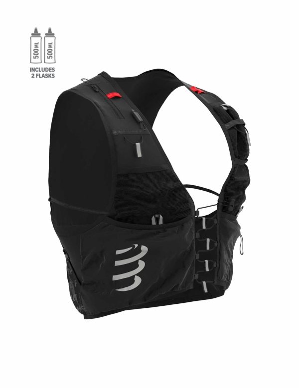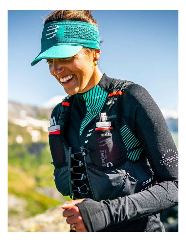 When we say we test our products in real world conditions, we mean it. And it doesn’t get more real than the UTMB®: the new-generation UltRun S Pack Evo 10 earned no less than 4 top-10 results over all 2021 events, proving it’s here to mix it up with the best. We’ve taken our UltRun S Pack and evolved it for even more performance. Smaller than its Evo 15 counterpart, the Evo 10 model features a novel, zig-zag elastic closure system on the front that allows the chest to expand as the tempo builds, making it ideally suited to shorter, higher-intensity efforts. On the chest, two easy-to-reach mesh pockets hold soft flasks, with dedicated drink valve tabs to reduce movement. Foam inserts on the front prevent any rubbing on the ribcage. Smaller pockets securely hold keys or used wrappers. Stow your gloves, headband, headlamp, energy gels and more food in the larger lower compartments, which are easily accessed thanks to convenient tabs. A diagonal zipped pocket on the left-hand side keeps your phone within hands reach to check the route or stay in touch with your support crew. On the back, a large compartment holds all your compulsory gear such as full tights, long-sleeved baselayers, waterproof pants and survival blanket. The two large overlapping pockets stretch to accommodate a rain jacket and any extra equipment, while low-placed silicone toggles keep retracted poles out of the way when the trail doesn’t require them. True to Compressport standards, the vest is highly breathable and ergonomic, with soft seams for unmatched comfort. It is developed to be one of the most stable running vests on the market today, with absolute minimum vertical movement out of the trails. Adjustable side straps can be pulled tighter for added stability on technical sections. Reflective details provide improved visibility in low light conditions and the included whistle means you can head out with full peace of mind. The UltRun S Pack Evo 10 can easily be combined with a Free Belt for more capacity over longer efforts. Featherlight and bounce-free, this is the choice of fast trail runners looking for those all-important marginal gains.